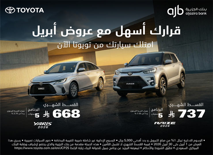 عروض التمويل التأجيري من بنك الجزيرة على سيارات تويوتا