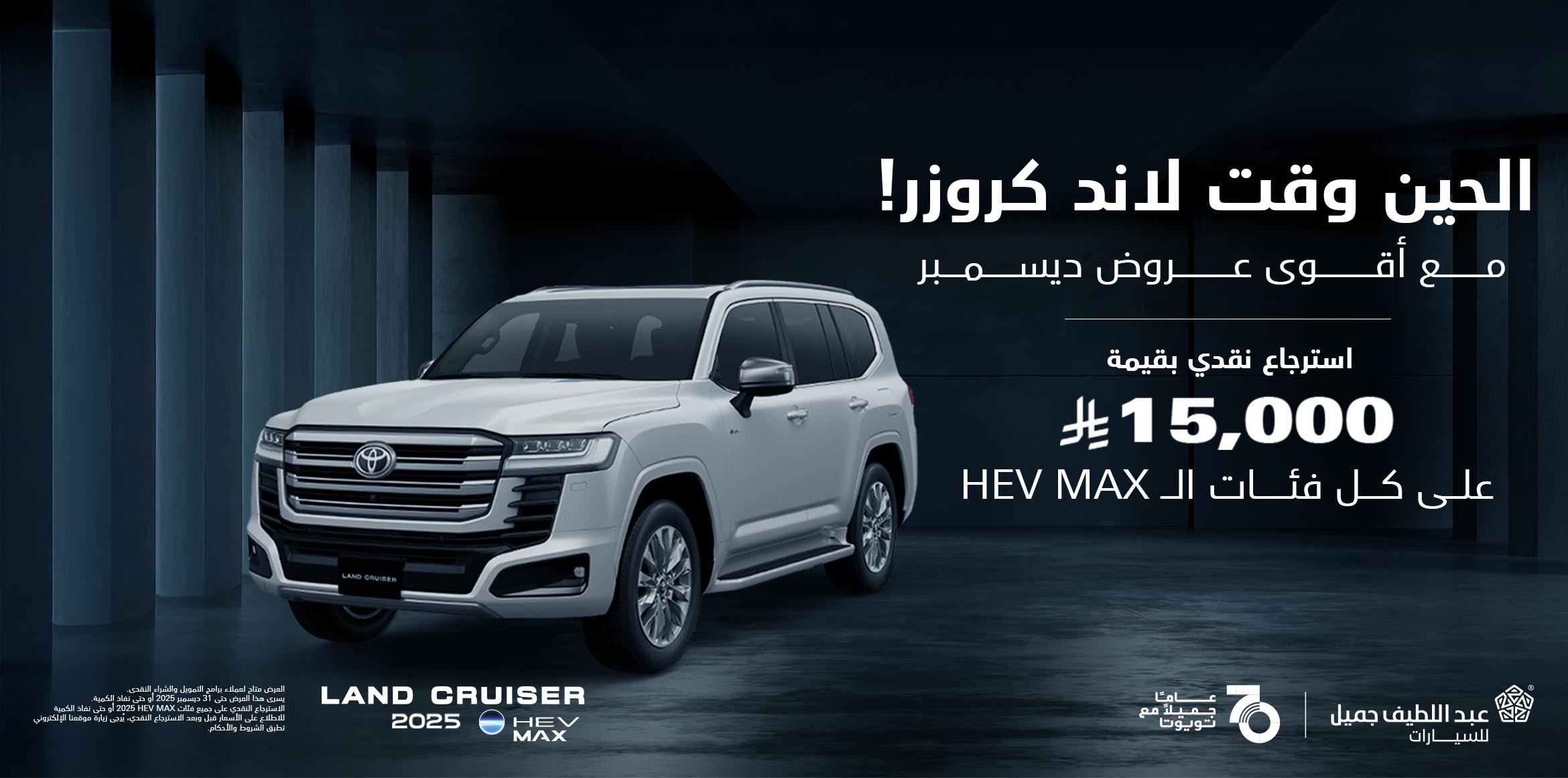 استفد من عرض الاسترجاع النقدي 15,000 ريال على لاند كروزر HEV MAX