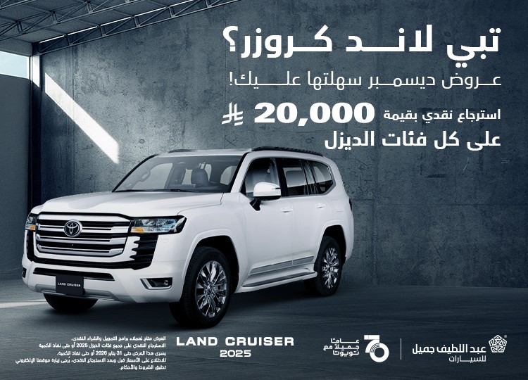 استرجاع نقدي يصل إلى 20,000 ريال على جميع فئات لاند كروزر الديزل لفترة محدودة.