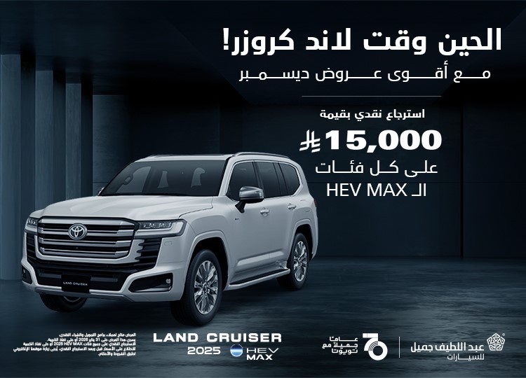 استفد من عرض الاسترجاع النقدي 15,000 ريال على لاند كروزر HEV MAX