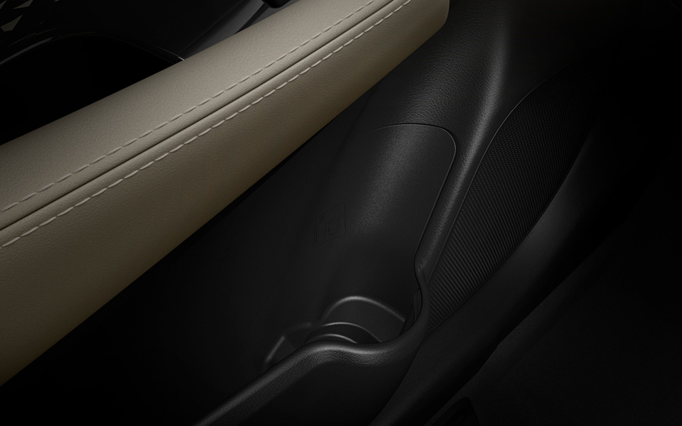 إحساس بالاستمرارية من لوحة العدادات الرفيعة الواسعة إلى لوح ديكور على الأبواب, في تعبير عن خاصية الشعور بلاحتضان التي تجدها في سيارة الصالون.