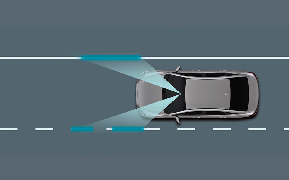 إذا قدر نظام تحذير مغادرة حارة السير LDA أن المركبة بدأت بطريقة غير مقصودة بالانحراف عن حارة سيرها التي يمكن رؤية علاماتها، يقوم النظام بتنبيه السائق من خلال منبه مسموع و منبه مرئي.