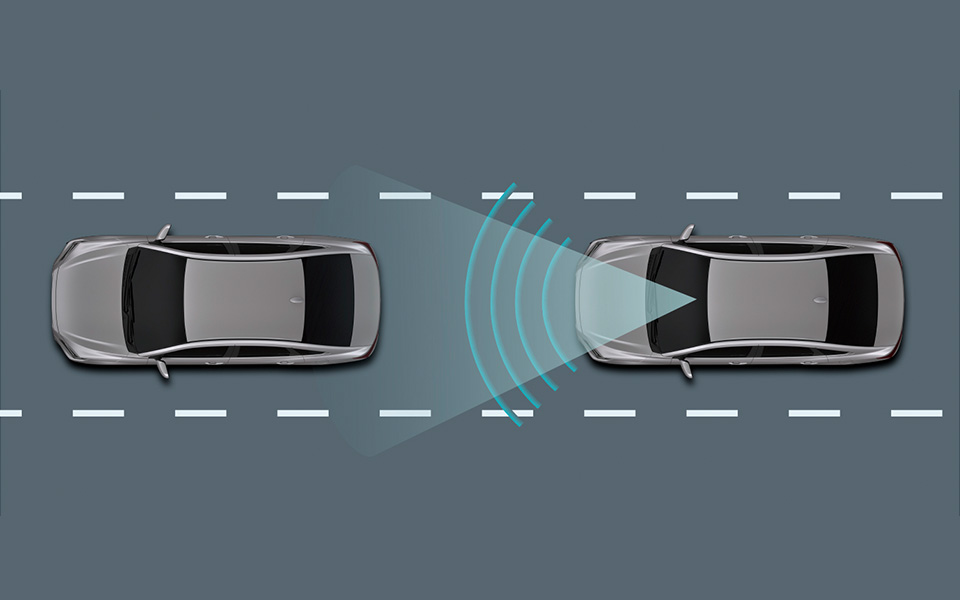 عن طريق استعمال كاميرا ستيريو, يقوم مثبت السرعة المتكيف ACC برصد المركبة التي أمام مركبتك ويحافظ على مسافة مناسبة بين المركبتين، ويتيح أيضاً إمكانية تتبع المركبة و يكون نظام مثبت السرعة مفعل مابين مدى السرعة 30 كم/س الى 125 كم/س فقط