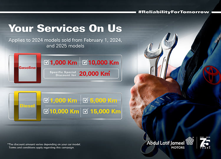 The above-mentioned services will be performed as per the Owner’s Manual at Abdul Latif Jameel Retail service centers.