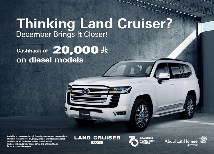Cashback of up to SAR 20,000 on all Land Cruiser Diesel grades, for a limited time.