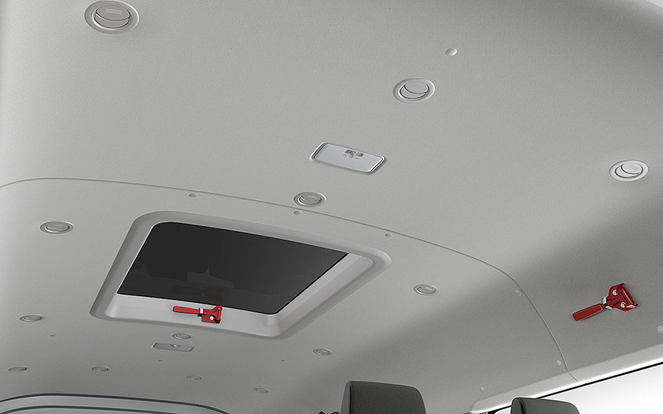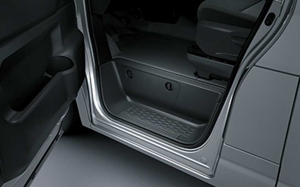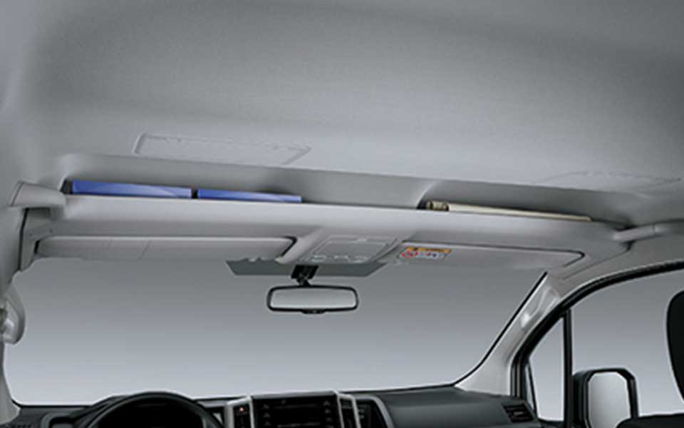 Door pockets with space for A4 size files, Convenient console tray for small items, Overhead tray for neat storage of items for immediate access.