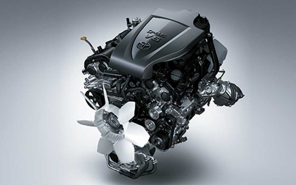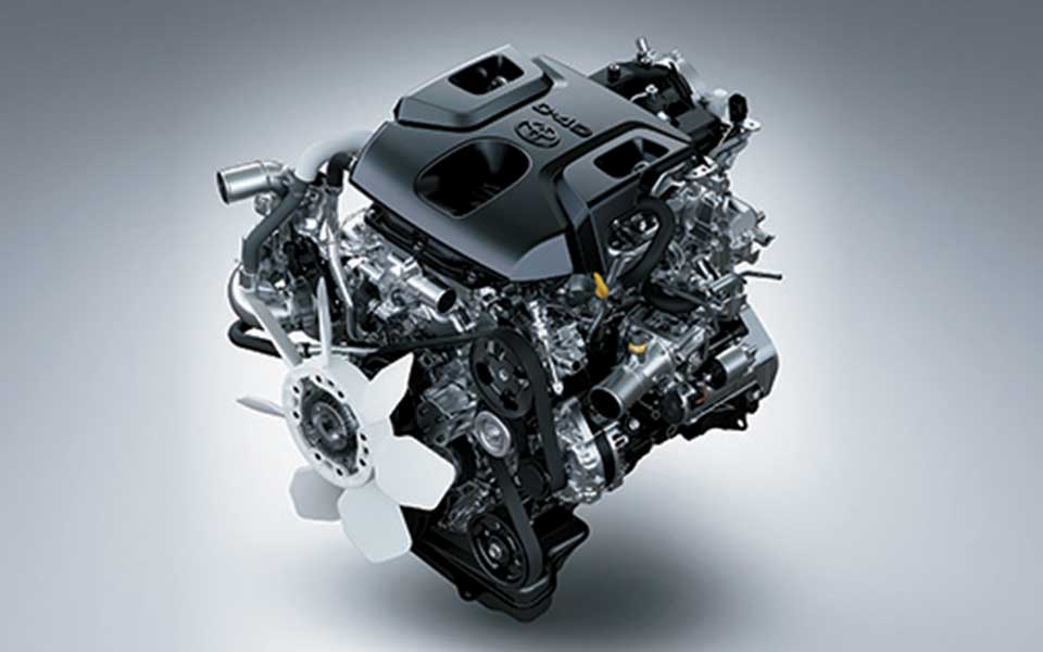 The 1GD-FTV engine adopts a turbocharger with intercooler, which helps produce powerful dynamic performance while enhancing fuel economy and quietness.