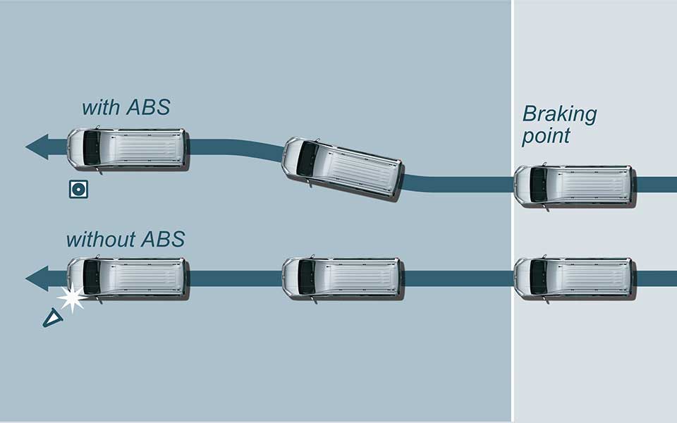 In addition to ABS, which helps prevent wheel lock-up during braking, the adoption of EBD helps ensure optimal distribution of braking force to the left and right wheels.