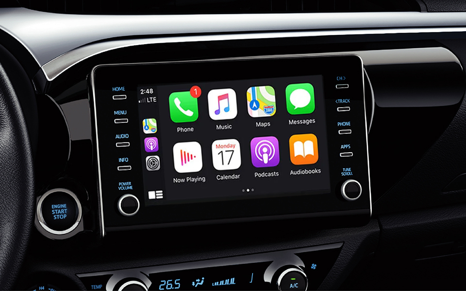 The large display enables touch operation. With apple car play system and built-in navigation. Available on Adventure and GRs.