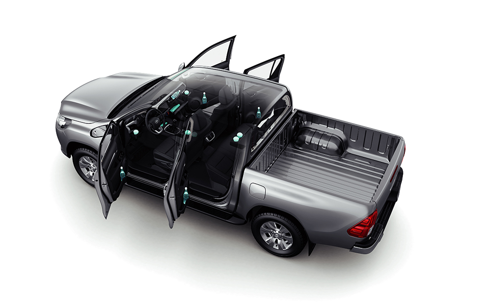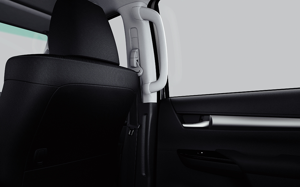 Strategically positioned assist grips make getting in and out of the spacious cabin easy.