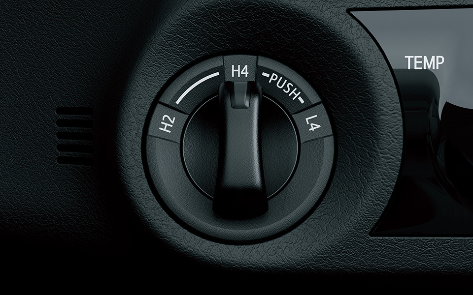 Highlighting driver-friendly operation, you can switch between 2WD and 4WD by simply turning the dial switch, even while moving