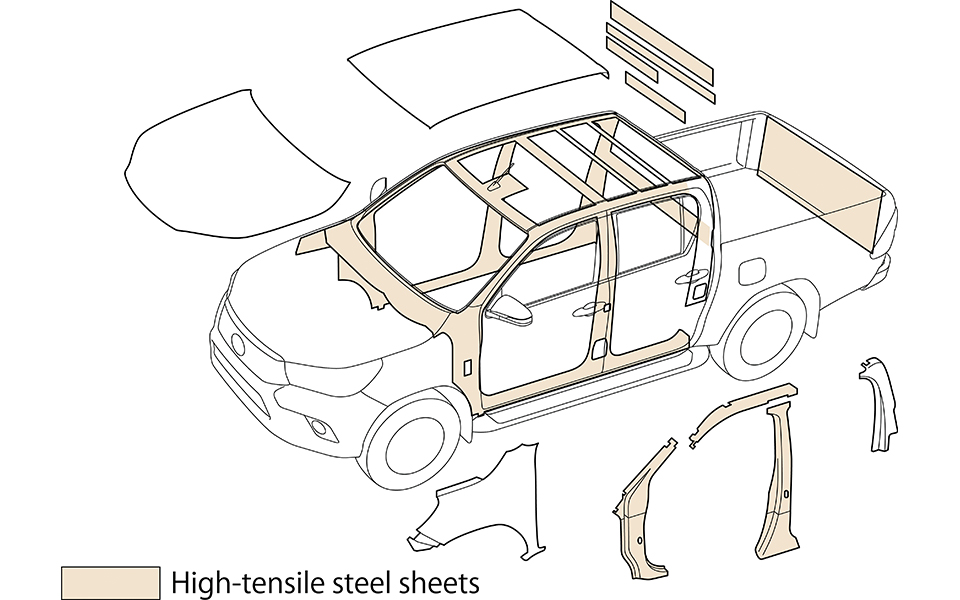 Contributes to the light body weight. Reinforcements to the joint structure, including the extensive use of spot welding, also enhance body rigidity