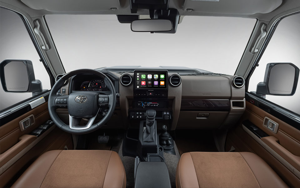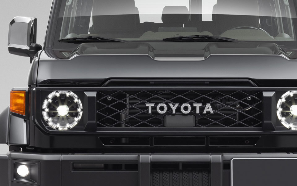 The imposing front end design and overhanging independent fenders preserve the Land Cruiser legacy and create an overwhelming sense of stability.